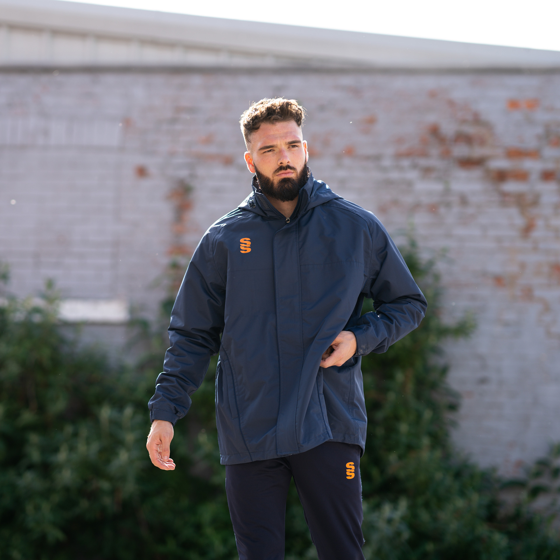 The Dual Fleece Lined Jacket is made with a thick wax coated outer shell, fully waterproof, with a soft warm fleece lining. Taped seams add further waterproofing protection. It features a concealed hood with pull cords, 2 zip pockets and a placket zip cover on the body and pockets. To finish, our Surridge SS logo is situated on the right chest.